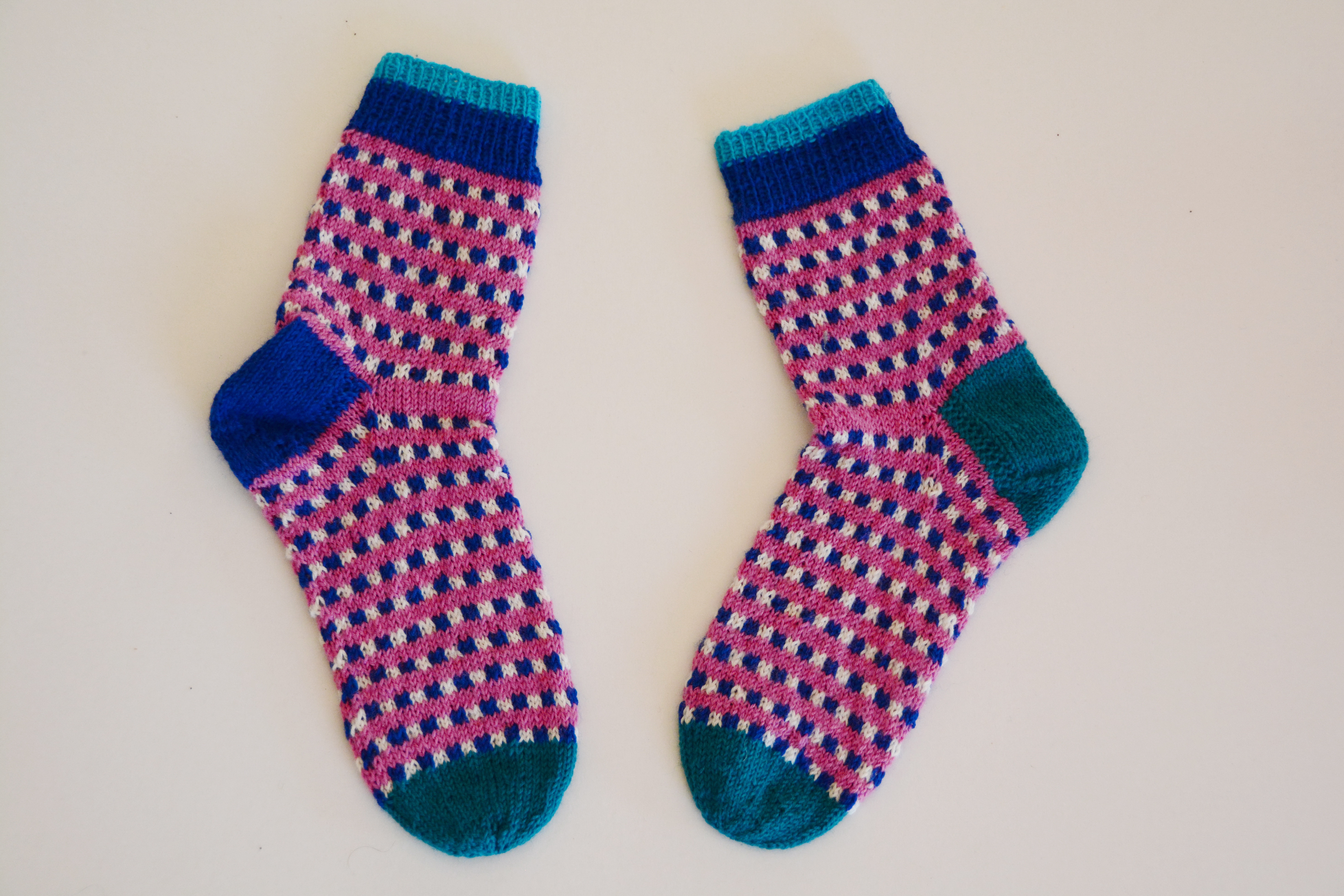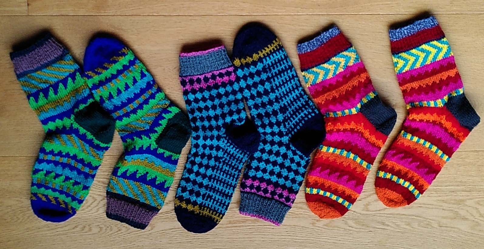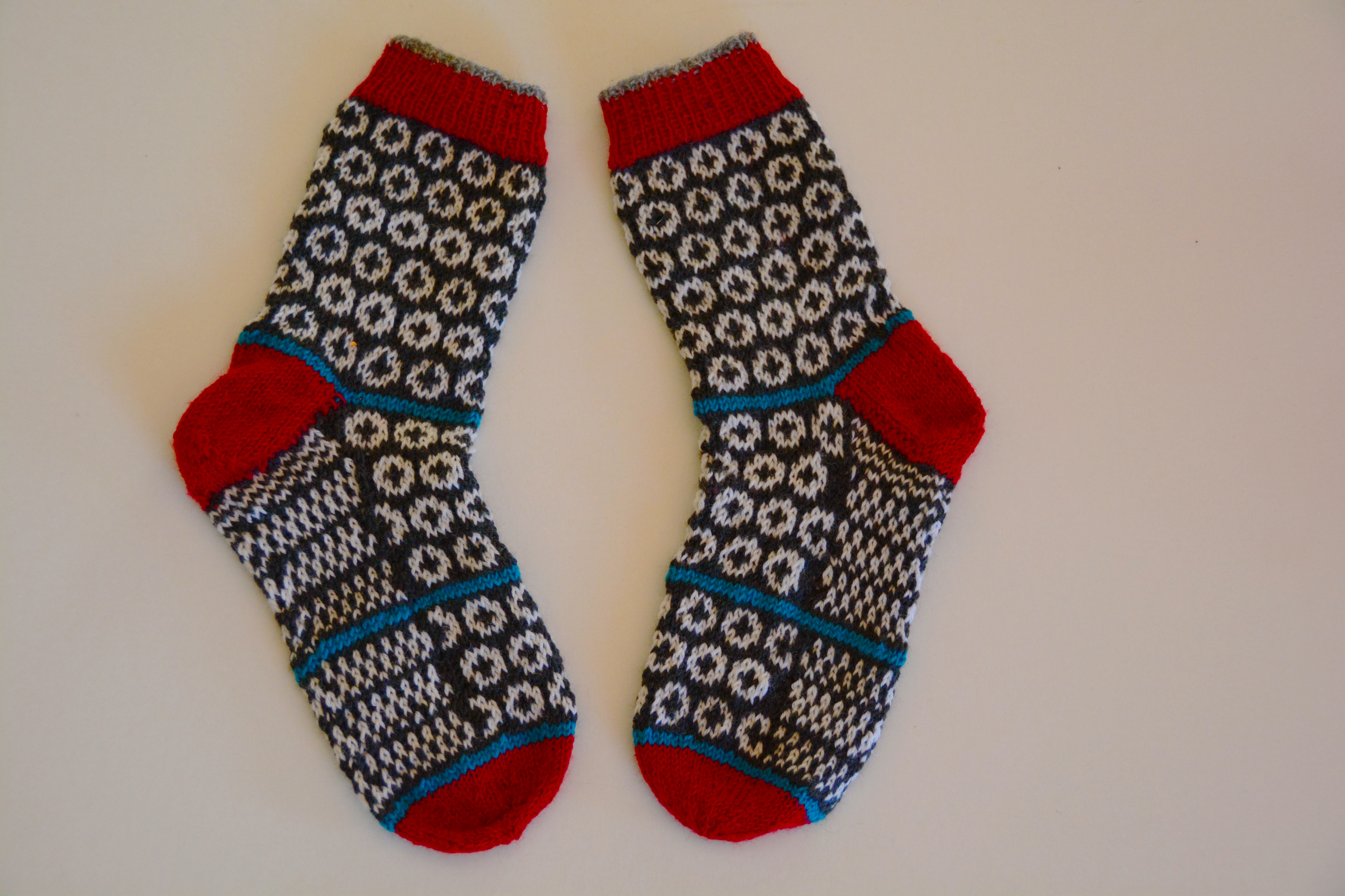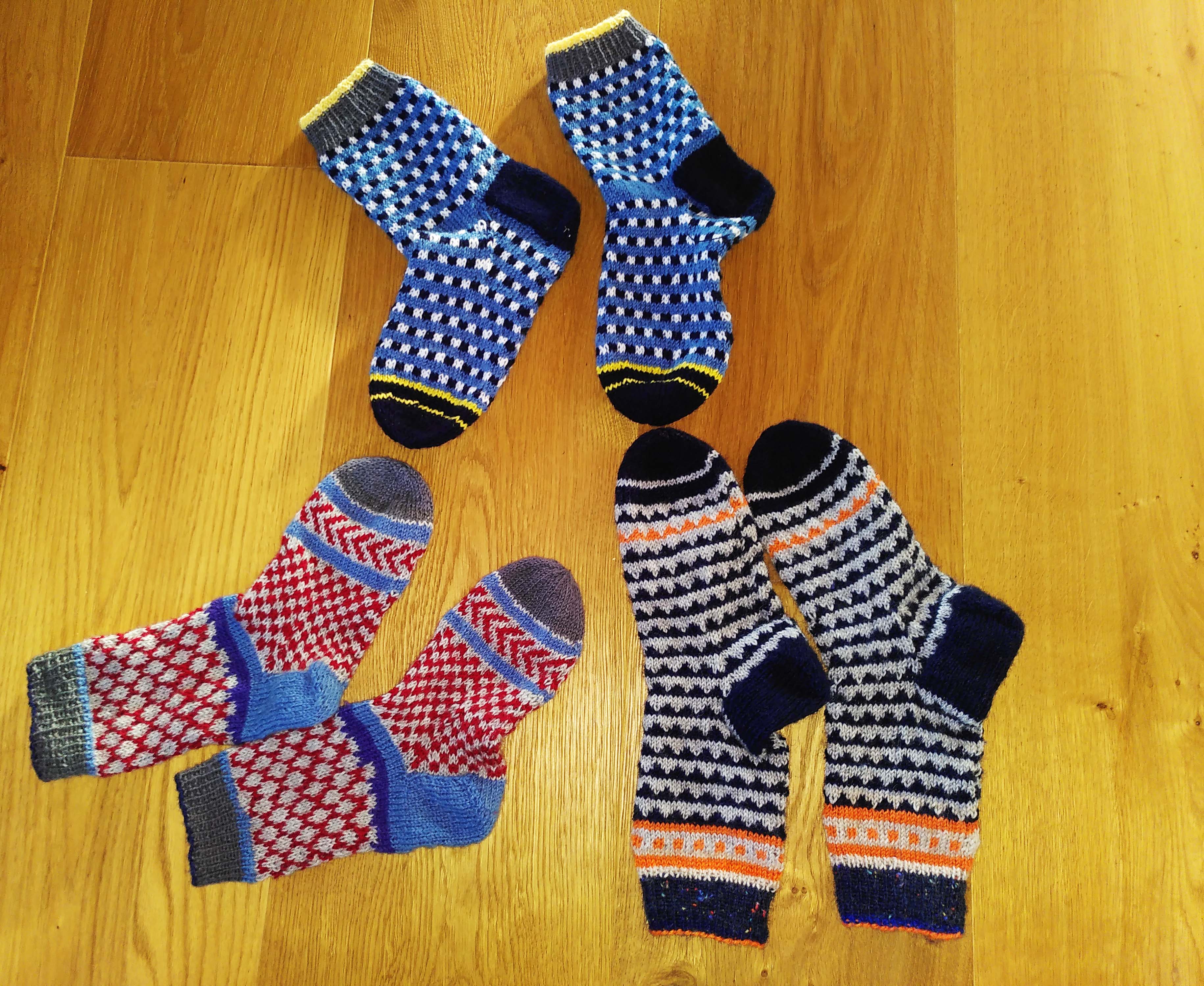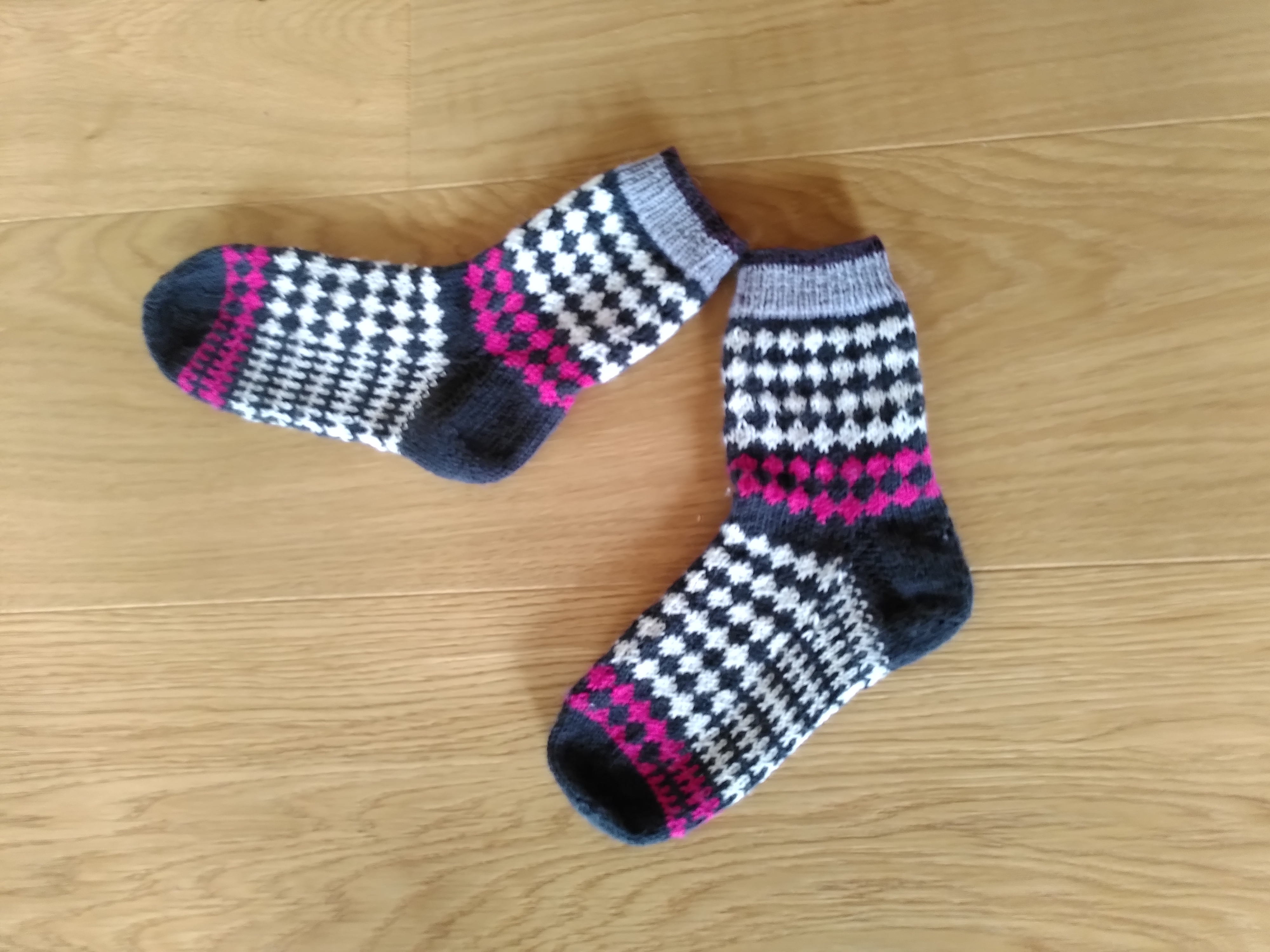 Merinowolle, Jaquardmuster, vor dem Fernsehkrimi in Handarbeit gestrickt.